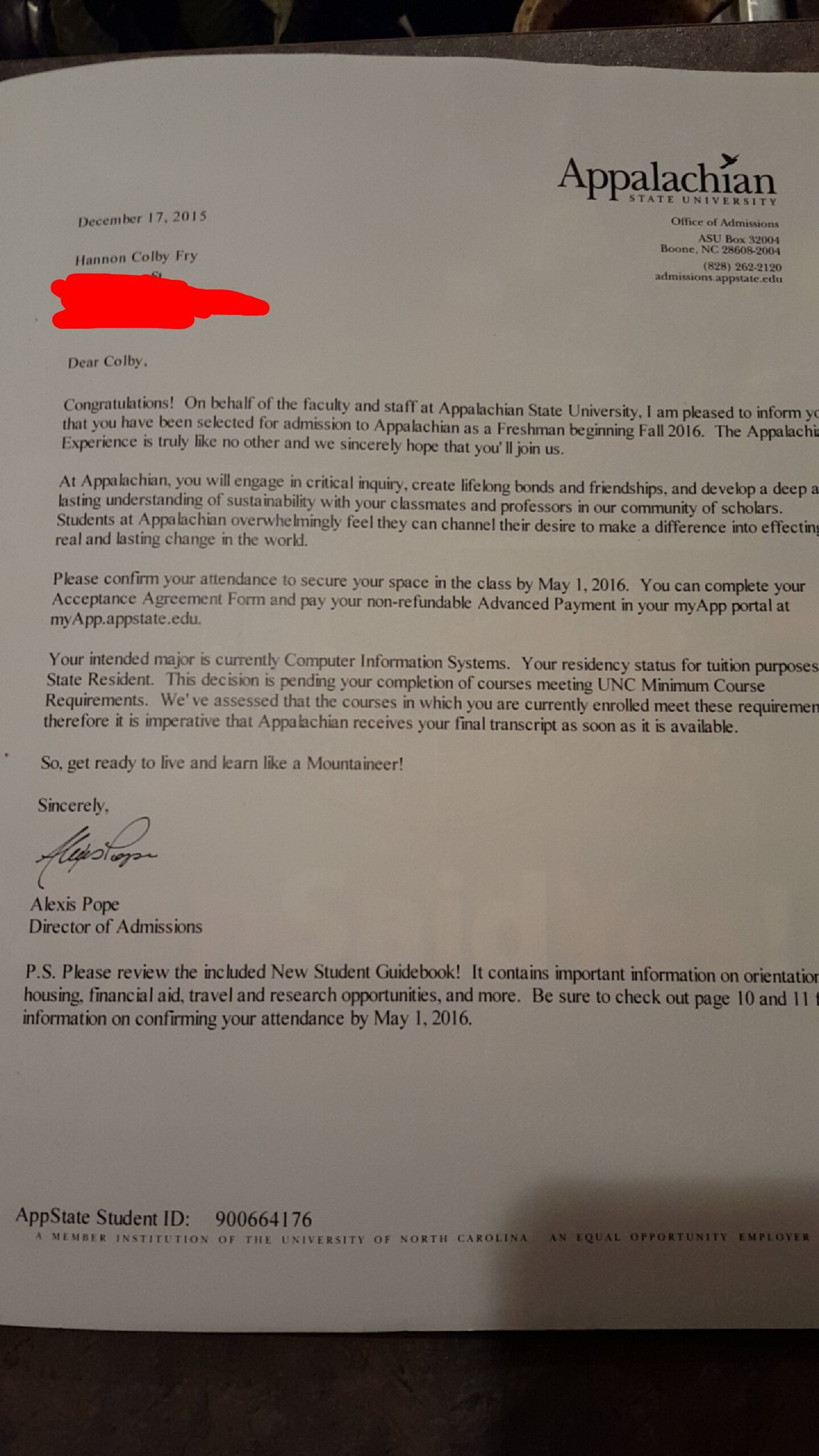Incoming Student Dates Deadlines. It is the students responsibility to ensure that all courses they are enrolled. If you have not yet done so apply for admission to Appalachian State University Step 2.